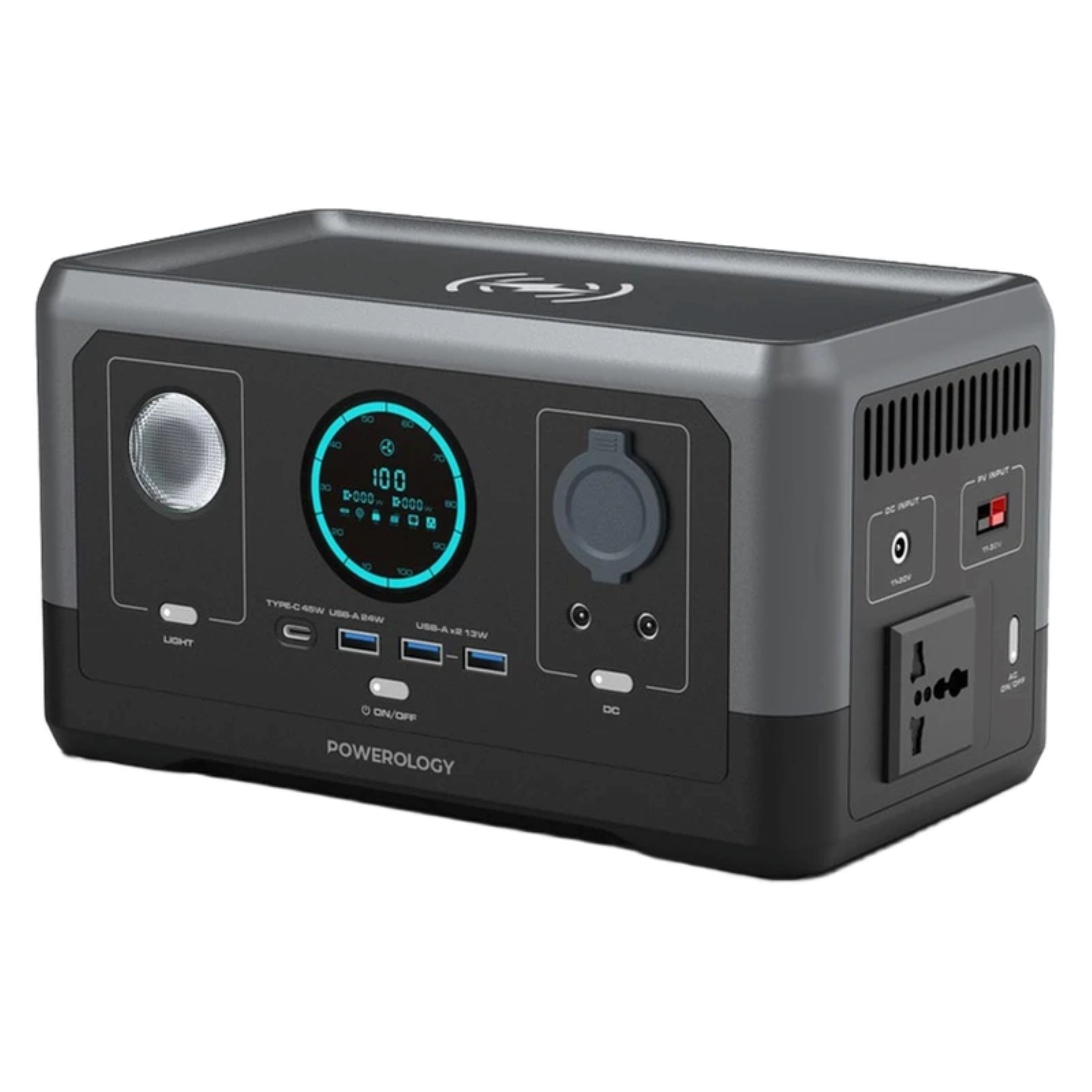 ظرفیت: ۷۶۸۰۰ میلی آمپر ساعت / ۲۸۵ وات ساعت خروجی برق خودرو: ۱۱ – ۱۶.۸ ولت با حداکثر جریان ۸ آمپر خروجی برق با جریان متناوت (AC): ۱۱۰/۲۲۰ ولت با فرکانس ۵۰-۶۰ هرتز حداکثر توان: ۳۰۰ / ۶۰۰ وات توان درگاه وایرلس: ۱۵ وات خروجی درگاه USB-A شماره ۱: ۵ ولت / ۳ آمپر، ۹ ولت / ۲ آمپر، ۱۲ ولت / ۲ آمپر، حداکثر ۲۴ وات خروجی درگاههای USB-A شمارهی ۲ و ۳: ۵ ولت / ۲.۵ آمپر، حداکثر ۱۳ وات خروجی درگاه USB-C: حداکثر ۴۵ وات – ۵ ولت / ۳ آمپر، ۹ ولت / ۳ آمپر، ۱۲ ولت / ۳ آمپر، ۱۵ ولت / ۳ آمپر دمای کارکرد: ۱۰- تا ۴۰ درجه سانتیگراد وزن محصول: ۲۸۰۰ گرم